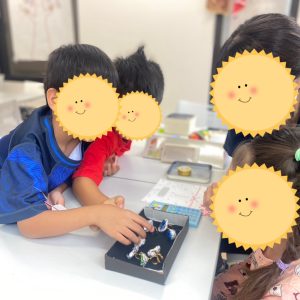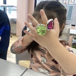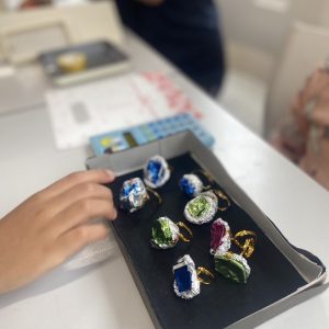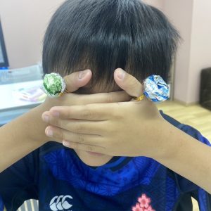 アルミホイルと折り紙で作ったステキすぎるジュエリー💍を並べて順番にお客さんと店員さん。